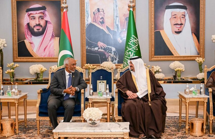 އަޒަރުބައިޖާނަށް ރައީސް ފުރާވަޑައިގަތީ، ދެ ހަރަމްފުޅުގެ ހާދިމް އަދި ސައޫދި އަރަބިއްޔާގެ ރަސްގެފާނު ސަލްމާން ބިން އަބްދުލްއަޒީޒްގެ ދައުވަތަކަށް، ޖޮއިންޓް އަރަބް-އިސްލާމިކް ސަމިޓުގައި ބައިވެރިވެވަޑައިގަތުމަށް ސައޫދި- އަރަބިއްޔާއަށް ކުރެއްވި ރަސްމީ ދަތުރުފުޅު ނިންމަވާލެއްވުމަށް ފަހުގަ އެވެ.