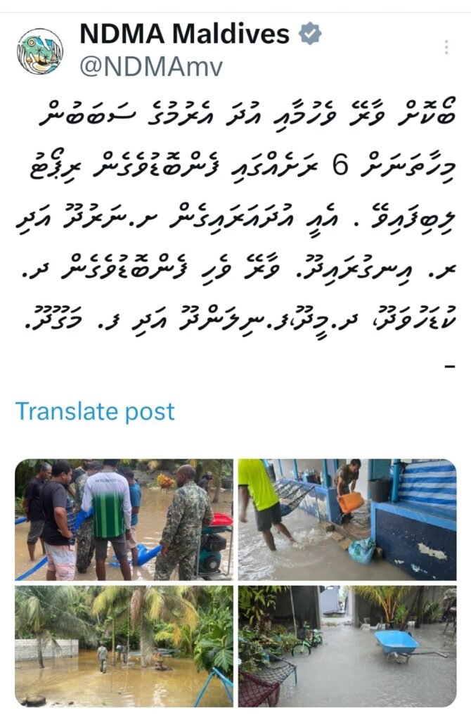 ބޯކޮށް ވާރޭވެހުމާއި، އުދައެރުމާއިގުޅިގެން 6 ރަށަކަށް އެހީތެރިކަންފޯރުކޮށްދެނީ: އެންޑީއެމްއޭ
