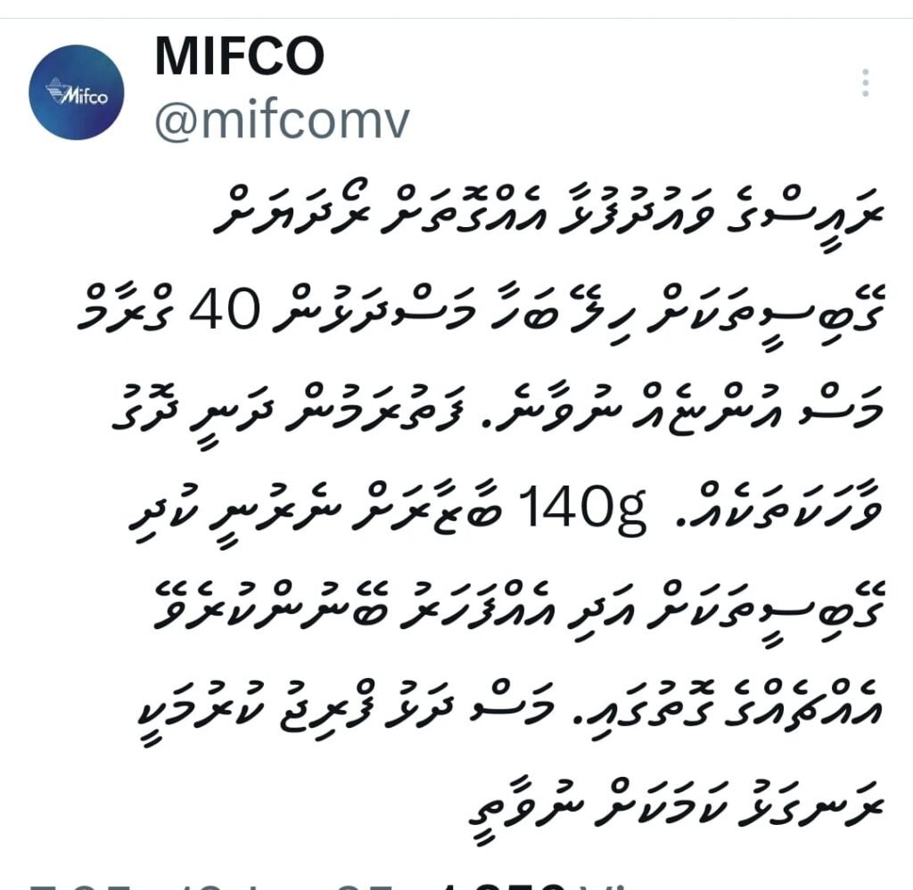 މިފްކޯއިން މިއަދު އެކްސް ގައި ކޮށްފައިވާ ފޯސްޓުގައި ބުނެފައިވަނީ، 140ގ ބާޒާރަށް ނެރުނީ ކުދި ގޭބިސީތަކަށް އަދި އެއްފަހަރު ބޭނުންކުރެވޭ އެއްޗެއްގެ ގޮތުގައި. މަސް ދަޅު ފްރިޖު ކުރުމަކީ ރަނގަޅު ކަމަކަށް ނުވާތީ ކަމަށެވެ. މިފްކޯއިން މީގެ ކުރިން ބުނީ، ކޮންމެ ގޭބިސީއަކަށް ދޭން ނިންމާފައިވަނީ 48 ދަޅުގެ މަސްކޭހެއް ކަމަށެވެ.