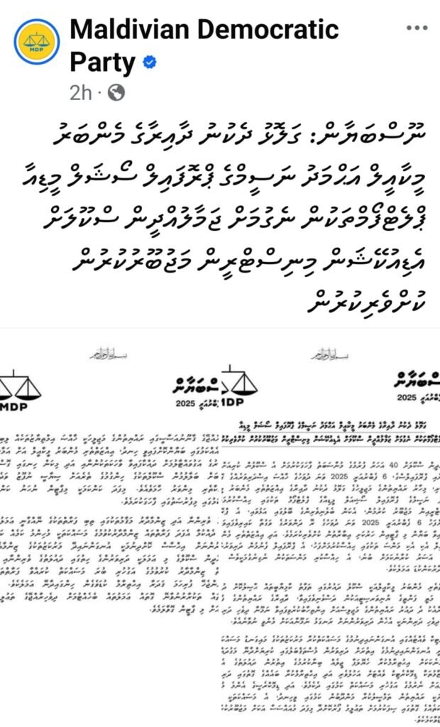 ރައްޔިތުންގެ މަޖިލިހުގެ ގަލޮޅު ދެކުނު ދާއިރާގެ އެމްޑީޕީގެ މެމްބަރު މީކާއީލު އަހްމަދު ނަސީމަށް ތައުރީފުކޮށް، ސޯޝަލް މީޑިއާގައި ޖަމާލުއްދީން ސްކޫލު (ޖޭއެސް) އާންމުކުރި ޕޯސްޓް ޑިލީޓުކުރި ގޮތަށް ބެލުމުން ސްކޫލްތަކުގެ ހންގުމުގެ ނިޒާމަށް ސިޔާސީ ނުފޫޒު ވަދެފައިވާ މިންވަރު ހާމަވެއްޖަކަމަށް އިދިކޮޅު މައި ޕާޓީ، މޯލްޑިވިއަން ޑިމޮކްރެޓިކް ޕާޓީ (އެމްޑީޕީ) އިން ބުނެފި އެވެ.