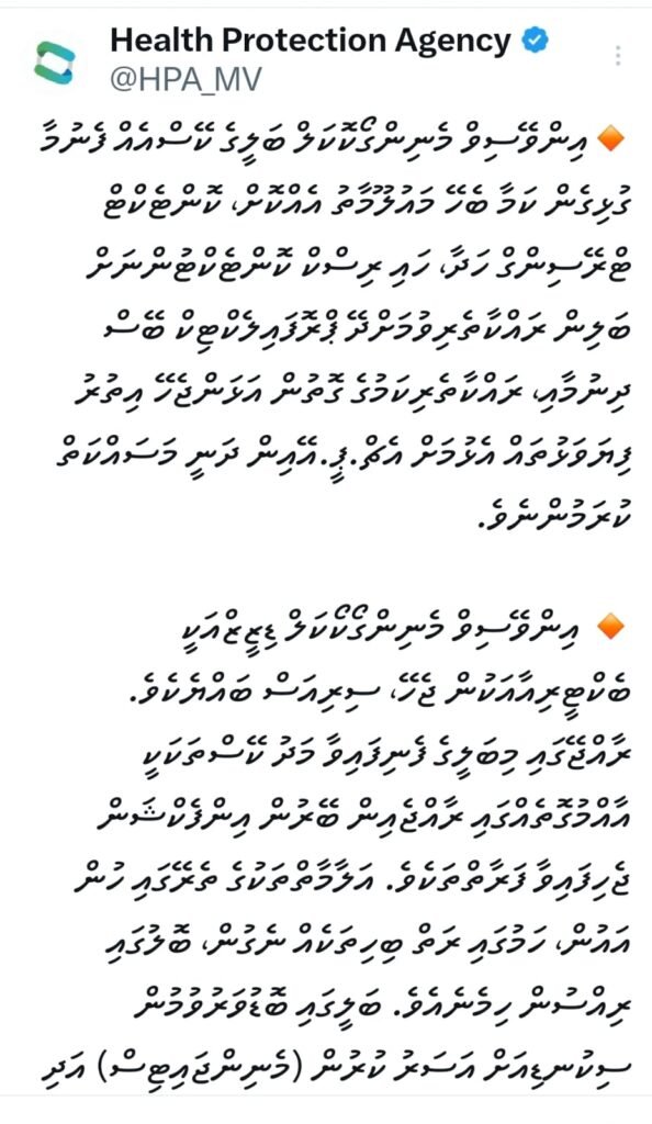 އެޗް.ޕީ.އޭ ގެ ރަސްމީ އެކްސް އެކައުންޓުން މިއަދު ކުރި ޕޯސްޓެއްގައި ބުނެފައިވަނީ، އިންވޭސިވް މެނިންގޯކޮކަލް ބަލީގެ ކޭސްއެއް ރާއްޖޭއިން ފެނުމާ ގުޅިގެން ކަމާ ބެހޭ މައުލޫމާތު އެއްކޮށް،ކޮންޓެކްޓް ޓްރޭސިންގް ހަދާ، ހައި ރިސްކް ކޮންޓެކްޓުންނަށް ބަލިން ރައްކާތެރިވުމަށްދޭ ޕްރޮފައިލެކްޓިކް ބޭސް ދިނުމާއި، ރައްކާތެރިކަމުގެ ގޮތުން އަޅަންޖެހޭ އިތުރު ފިޔަވަޅުތައް އެޅުމަށް ހެލްތު ޕްޓެލްޝަން އެޖެންސީ، ( އެޗް.ޕީ.އޭ) މިއަދު ފަށައިފިއެވެ.