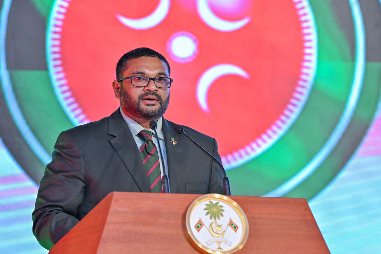 ވަޒީރު މިހެން ވިދާޅުވީ ނަސްރުގެ ދުވަހުގެ ރަސްމީ ޖަލްސާގައި ވާހަކަފުޅުދައްކަވަމުންނެވެ.