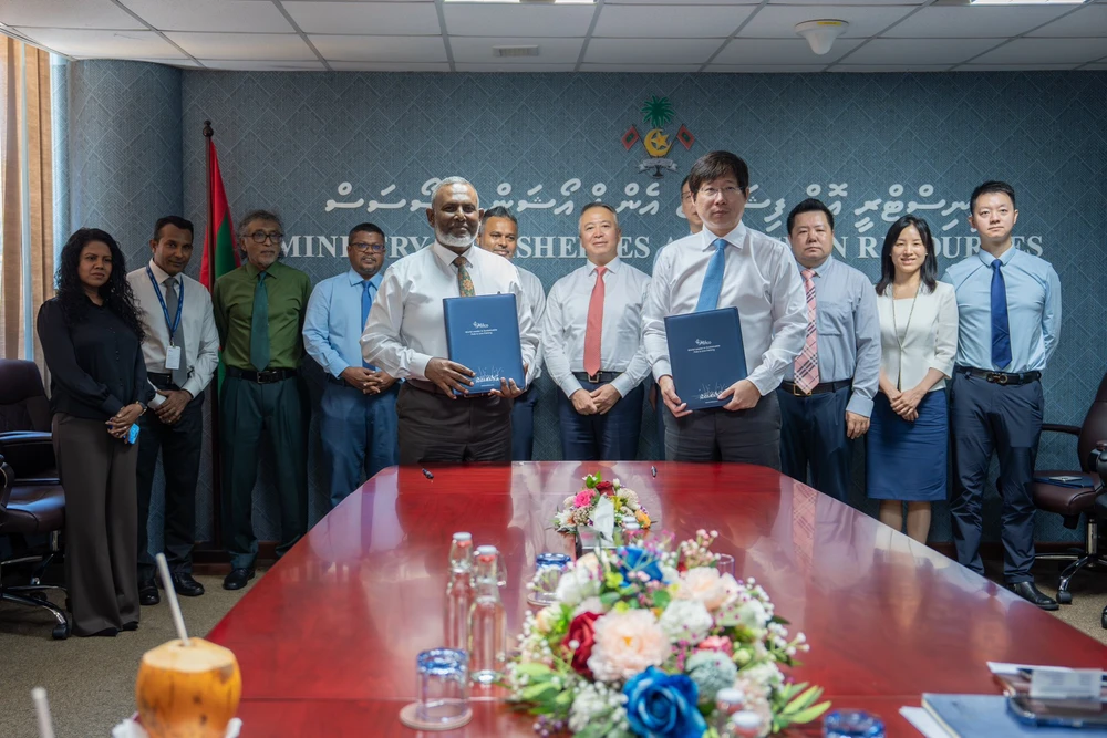 މަސްވެރިކަމުގެ ދާއިރާގެ އިންފްރާސްޓްރަކްޗާ އިތުރަށް ތަރައްޤީކޮށް ހަރުދަނާ ކުރުމަށް ޓަކައި، ތިން އެމްއޯޔޫއެއްގައި މޯލްޑިވްސް އިންޑަސްޓްރިއަލް ފިޝަރީޒް ކޮމްޕެނީ (މިފްކޯ) އާއި ޗައިނާ މެޝިނަރީ އިންޖީނިއަރިންގ ކޯޕަރޭޝަން (ސީ.އެމް.އީ.ސީ) އާ ދެމެދު ތިން އެއްބަސްވުމެއްގައި މިއަދު ސޮއިކޮށްފިއެވެ.